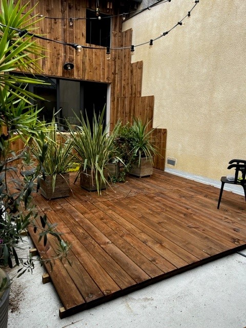 Terrasse avec lames casteljalousaines en noueux